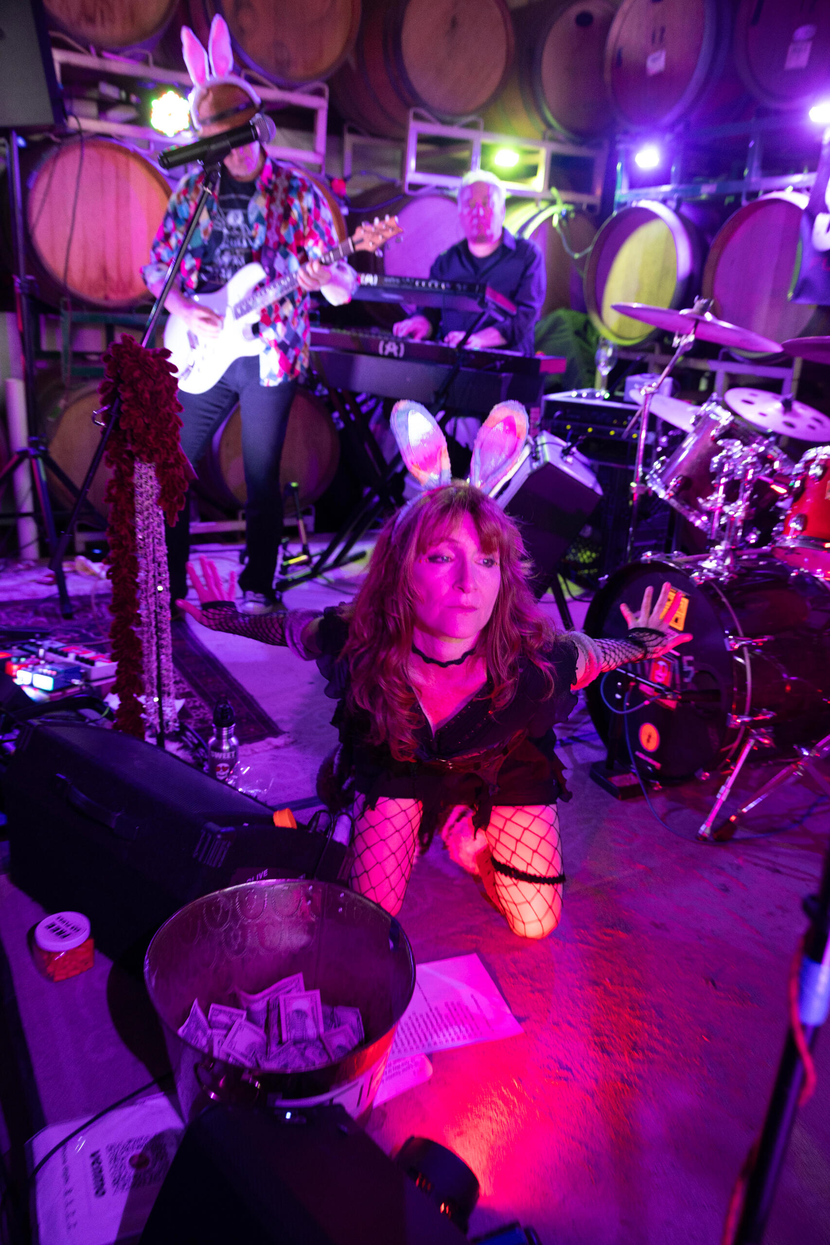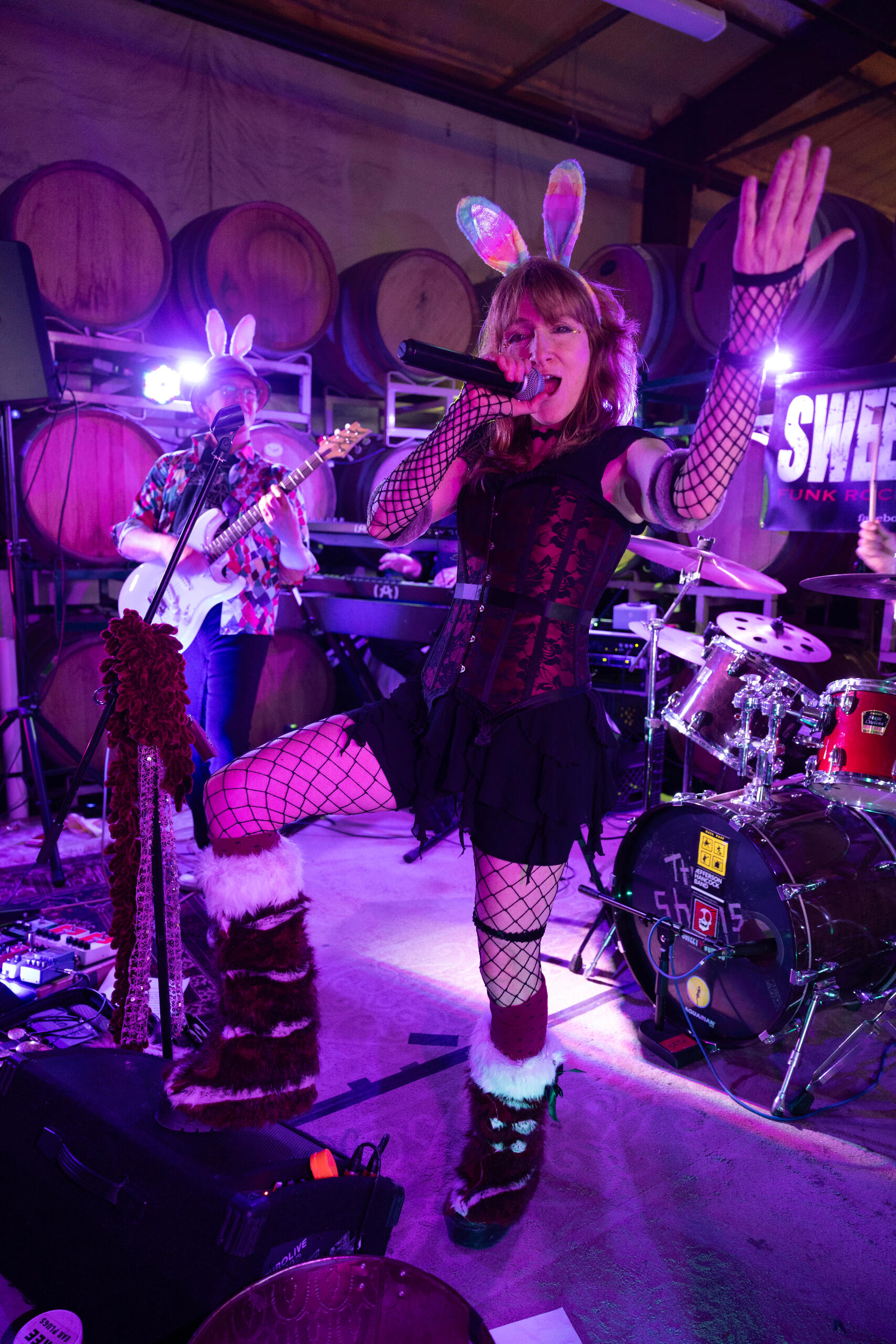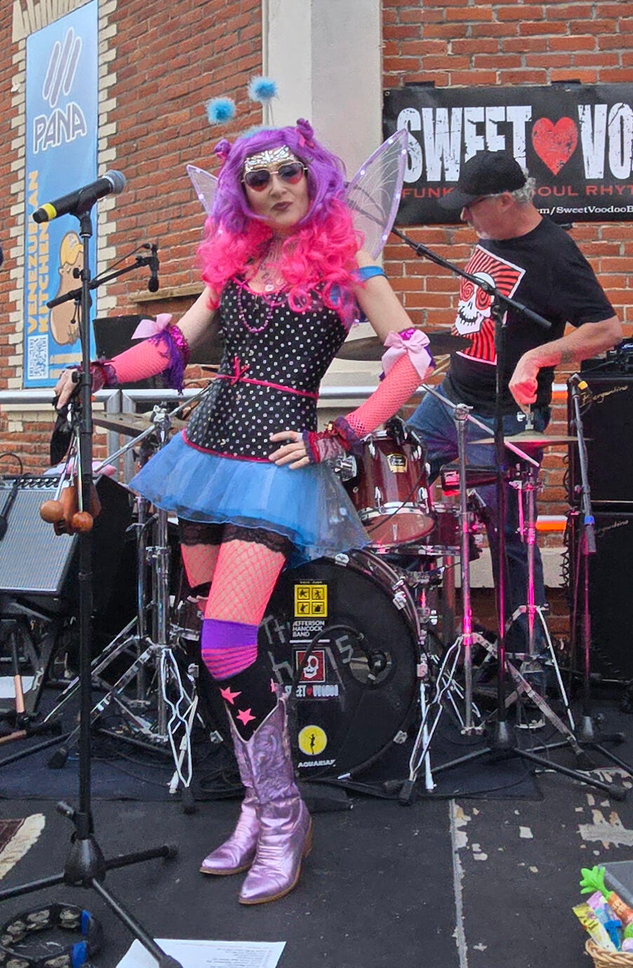 The talented and sassy "dynamic front lady" of Sweet Voodoo brings her full-tilt electric energy, creative costumery and groovy good vibes to the stage at Every. Single. Show. Influenced by Zep, Hendrix, Aretha, Janis and other epic voices of eras gone by, she'll surprise you with maush-up styles from various genres and tickle your funky bone until you can't resist shakin' that booty. Dedicated to the pronouns "We/Us", she enjoys hyping up the crowd and building on the collective energy to create a dance party you won't soon forget!!