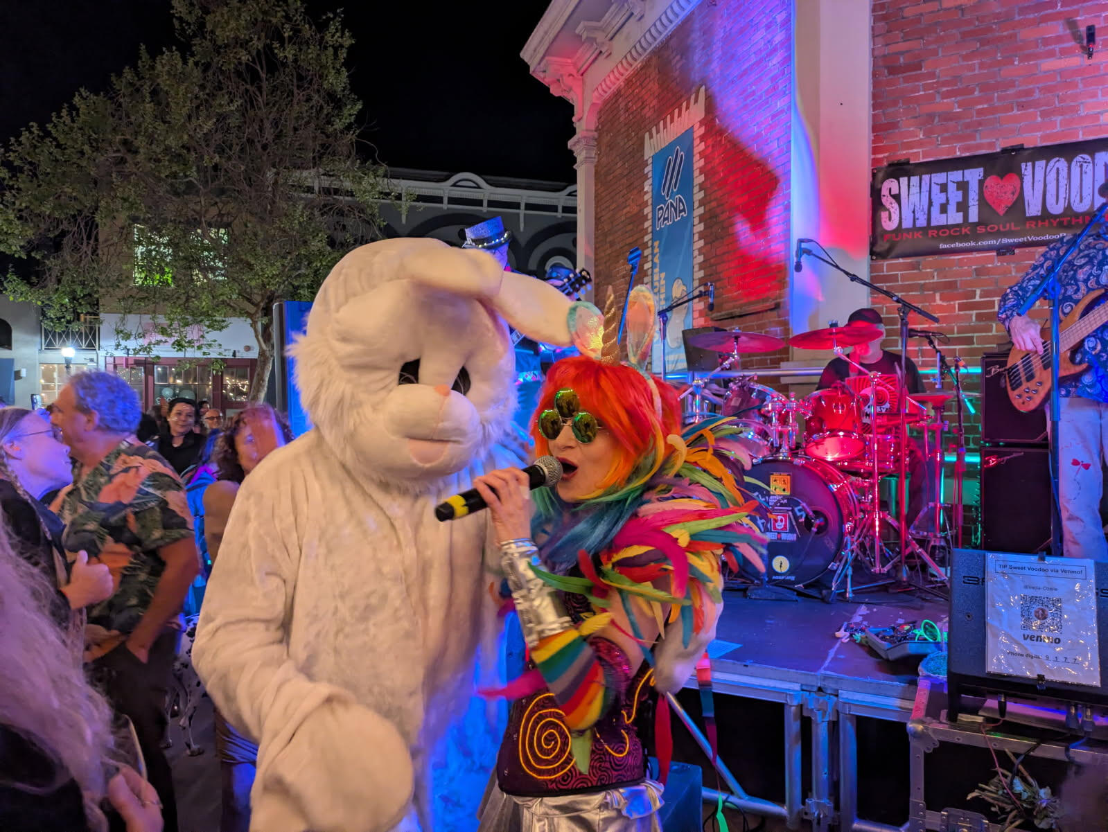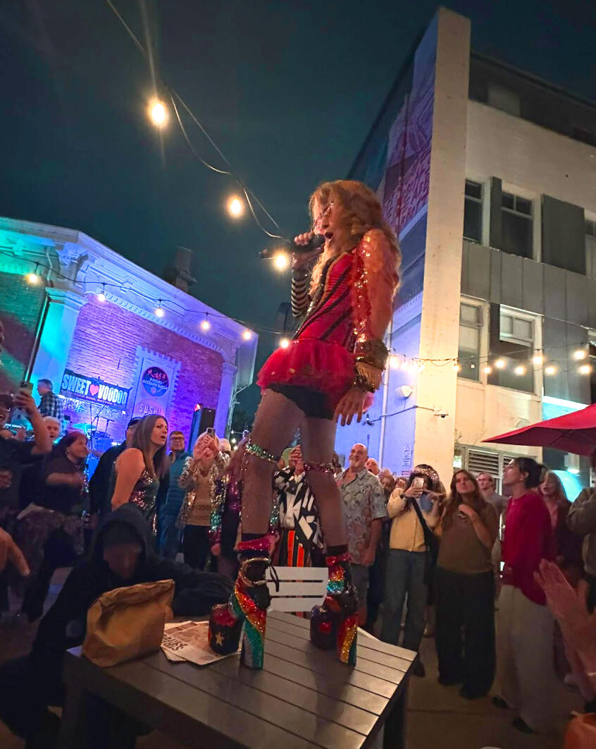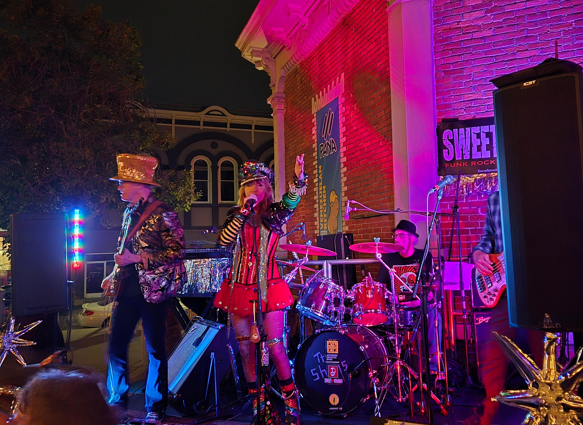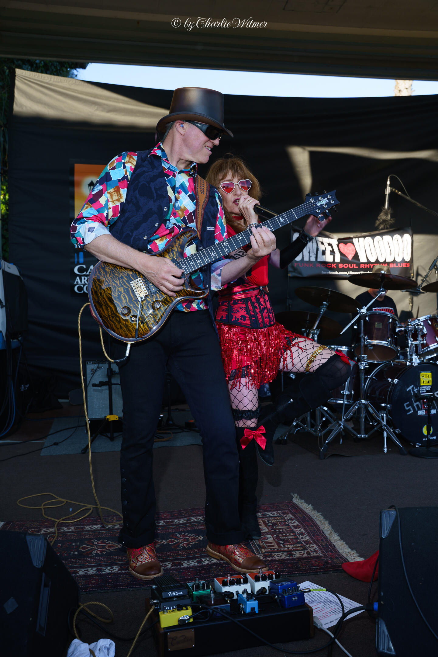 The talented and sassy "dynamic front lady" of Sweet Voodoo brings her full-tilt electric energy, creative costumery and groovy good vibes to the stage at Every. Single. Show. Influenced by Zep, Hendrix, Aretha, Janis and other epic voices of eras gone by, she'll surprise you with maush-up styles from various genres and tickle your funky bone until you can't resist shakin' that booty. Dedicated to the pronouns "We/Us", she enjoys hyping up the crowd and building on the collective energy to create a dance party you won't soon forget!!